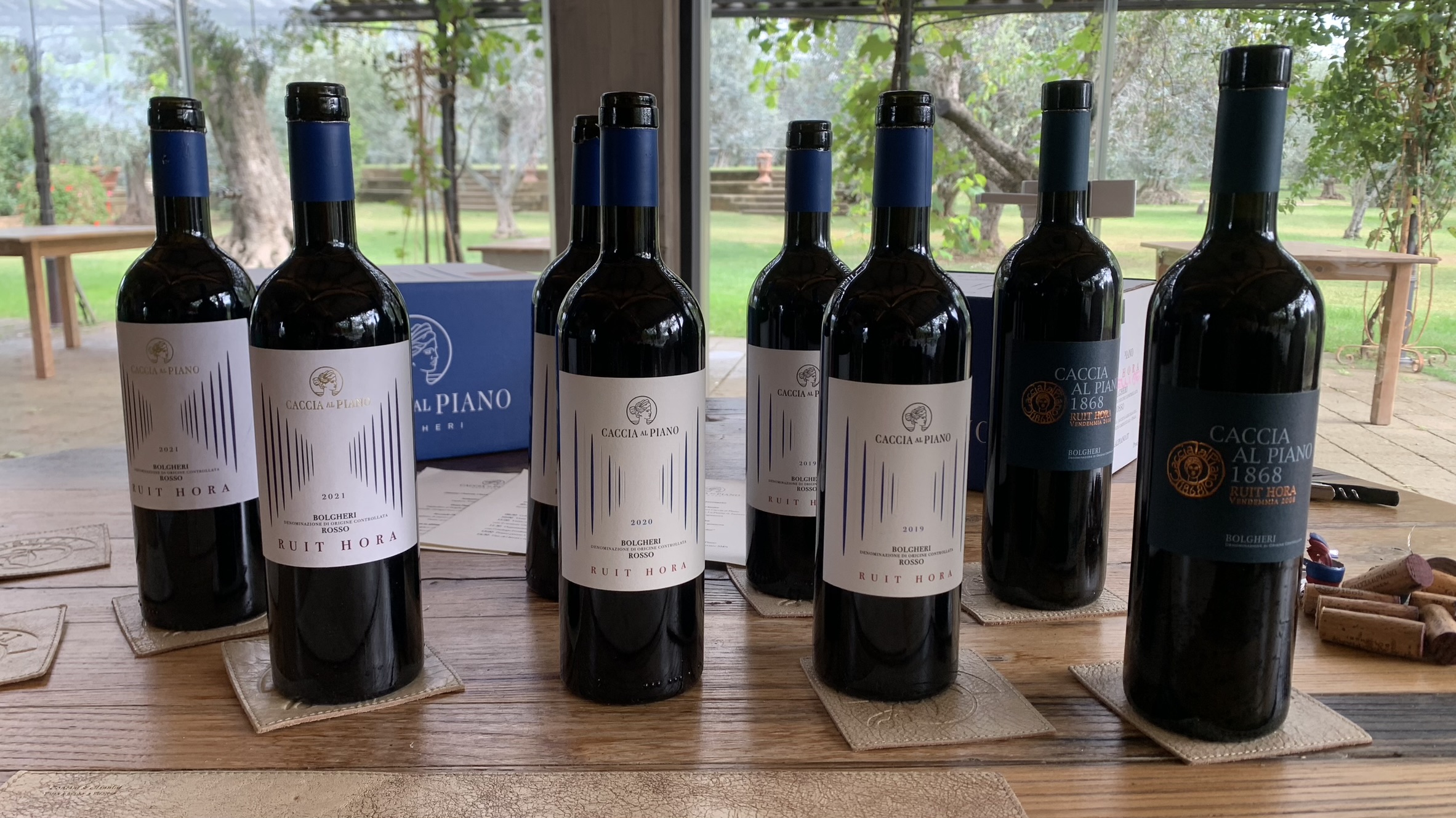 ed una produzione di circa 140.000 bottiglie annue, Caccia al Piano punta tutto sulla selezione in vigna e le singole vinificazioni dei vitigni coltivati (Cabernet Sauvignon, Merlot, Cabernet Franc, Syrah e Petit Verdot per i rossi, Vermentino e Sauvignon Blanc per le uve a bacca bianca). L’età delle vigne va dai 13 ai 23 anni e sono rappresentate da quattro veri e propri cru: San Biagio, Grottine, Cantina e Le Bozze. San Biagio è la vigna più alta a 180 mt slm, suddiviso in 7 parcelle dove i terreni risultano essere molto eterogenei con presenza di argilla e calcare, ricchi di scheletro. La costante ventilazione e la vicinanza del mare, proteggono le uve da muffe e marciumi. I vitigni sono coltivati con 3 diverse forme di allevamento: cordone speronato bilaterale, alberello impalcato e guyot che variano a seconda della tipologia di terreno, vitigno ed esposizione.