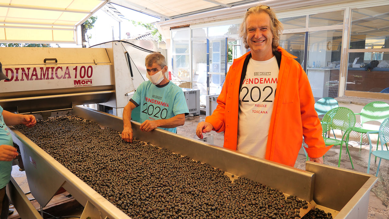 In questi giorni di settembre arrivano nella cantina di Fiesole le uve vendemmiate di notte per il Testamatta e il Colore, uva fredda come si fa in Claifornia, per evitare fermentazioni e conservare i frutti inalterati.