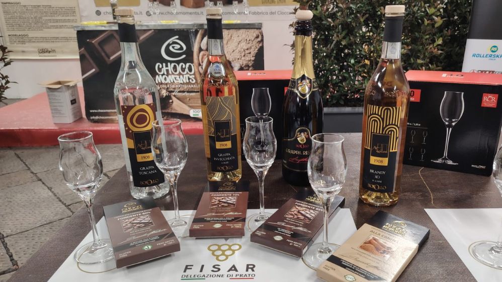 Importante anche il rituale della degustazione, in cui il palato si adatta prima alla grappa, con brevi sorsi, per poi essere accompagnato al cioccolato, anch’esso sciolto brevemente. La Distilleria Bonollo di Torrita di Siena, tra le poche presenti in Toscana, ha fornito quattro tipi di distillati.