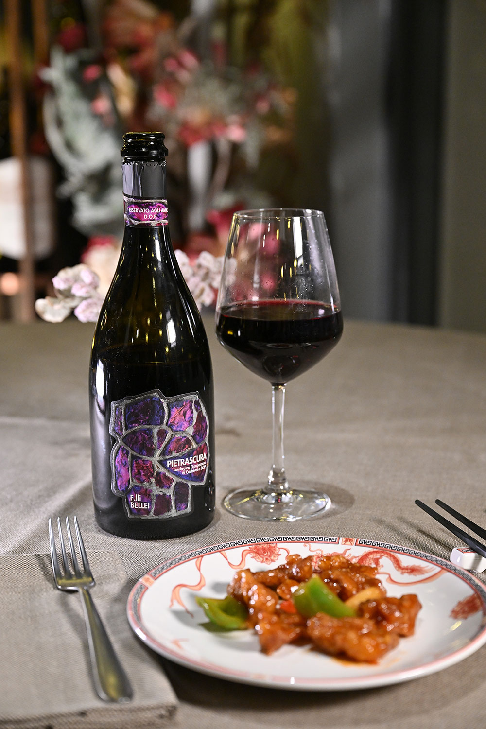 Lambrusco Grasparossa, un naso che si caratterizza per verticalità e precisione. Un calice asciutto e ben definito, secco ed intenso sul finale che chiude ammandorlato.