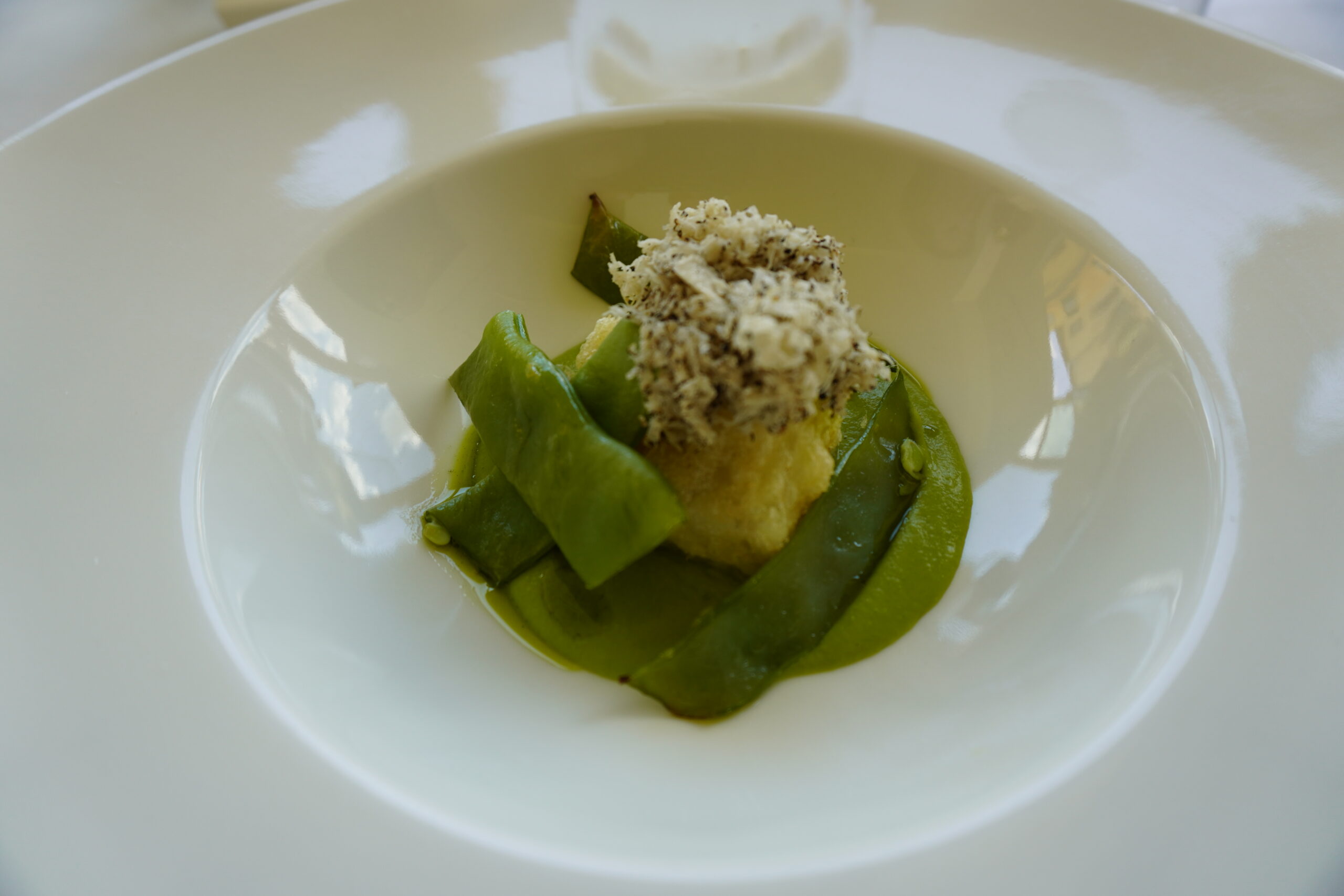 Baccalà del Morro in tempura, piselli, tartufo estivo e finocchietto selvatico