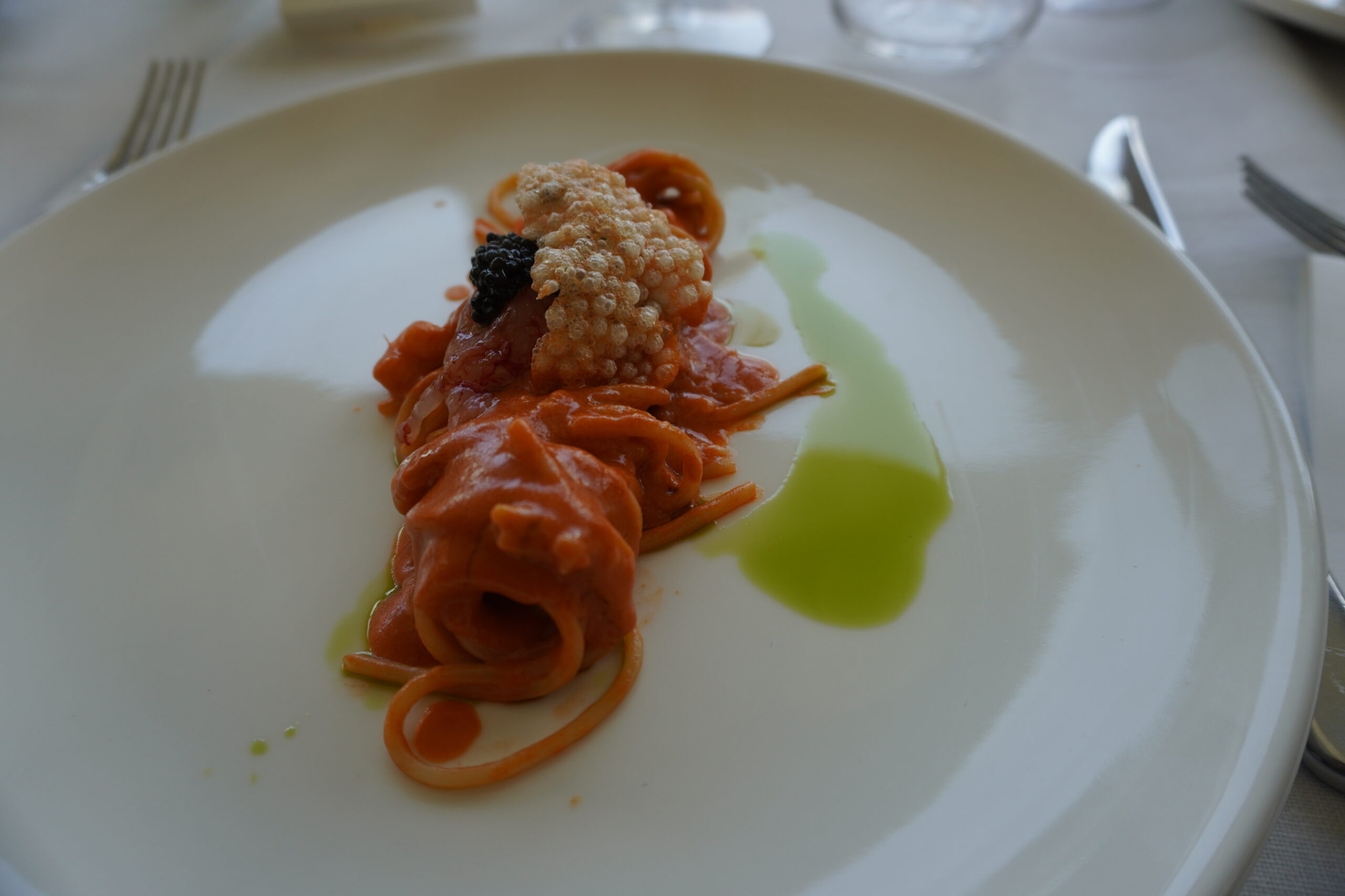 Intrigante ed appetitoso questo stile che accarezza il palato con la morbidezza e la tendenza dolce del pesce e al momento stesso lo stuzzica, lo solletica e lo seduce poi, di volta in volta con la sapidità del caviale, l’aromaticità del tartufo o del burro di Normandia, la speziatura delle spuntature allo champagne o la croccantezza della quinoa.