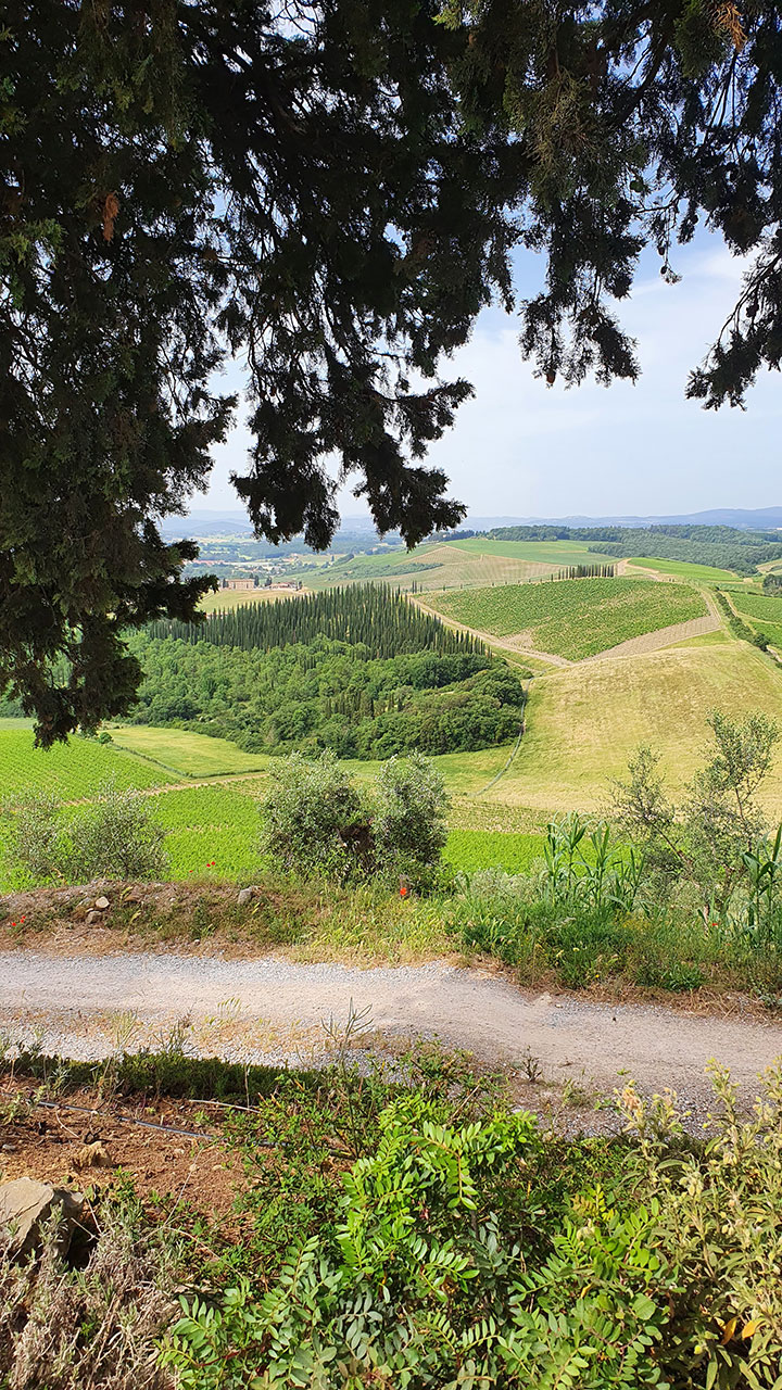 Circondati da ampi oliveti di più di tremila piante, i vigneti di Bibbiano si estendono per una superficie complessiva di circa 30 ettari tra i 270 ed i 310 metri di altitudine, disposti su declivi collinari che godono di un’invidiabile esposizione e di un ottimo microclima, caratterizzati da sedimenti argillosi di formazione pliocenica, più o meno compositi e ricchi di roccia alberese.