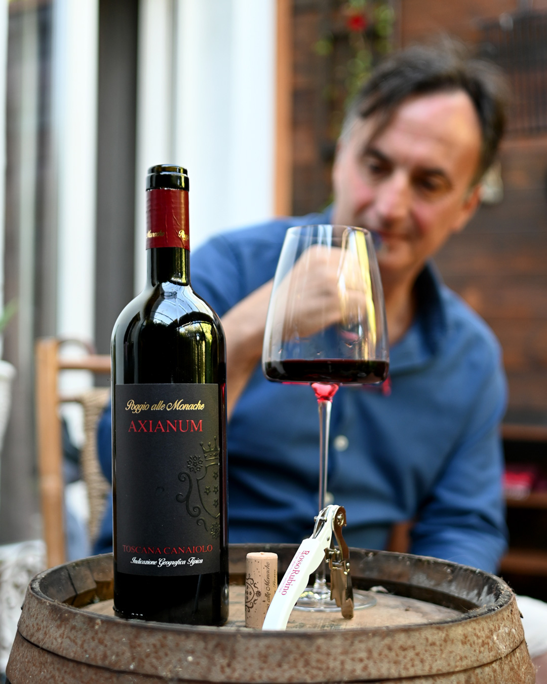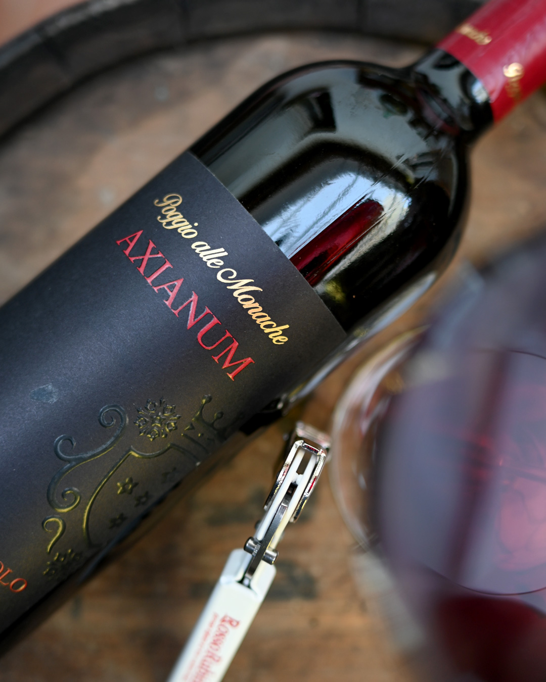 Axianum si presenta come un rosso di carattere che racconta un vitigno ricco di storia e personalità, noto in passato come “Canina” o “Cagnina” per un retrogusto che ricorda la rosa canina, oppure “Canajuola”, citato già nel XIV secolo dal celebre trattato di Pier de Crescenzi. Il nome Canaiolo, da quanto riportano Giardi e Magi, potrebbe legarsi al latino “dies caniculares”, i giorni più caldi tra luglio e agosto, quando le uve iniziano a colorarsi, quasi a preannunciare la loro intensa espressività.