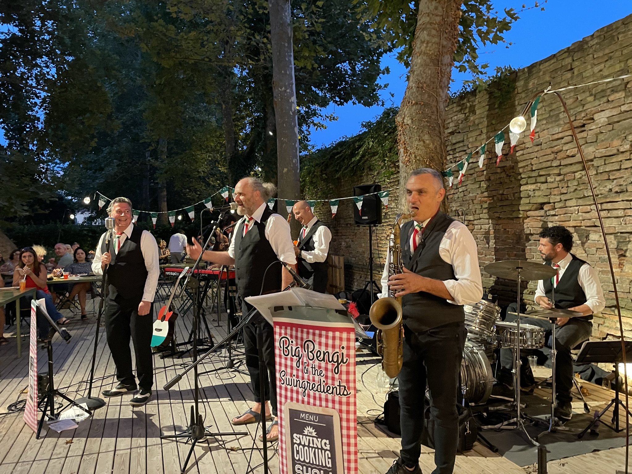 Ad accompagnare la chef e condurre il pubblico in questo viaggio, in un imperdibile itinerario musicale swing composto da brani inediti e cover del repertorio classico italiano, la band “Bengi & The Swingredienti”, guidata dal noto frontman Big Bengi della Band Ridillo.