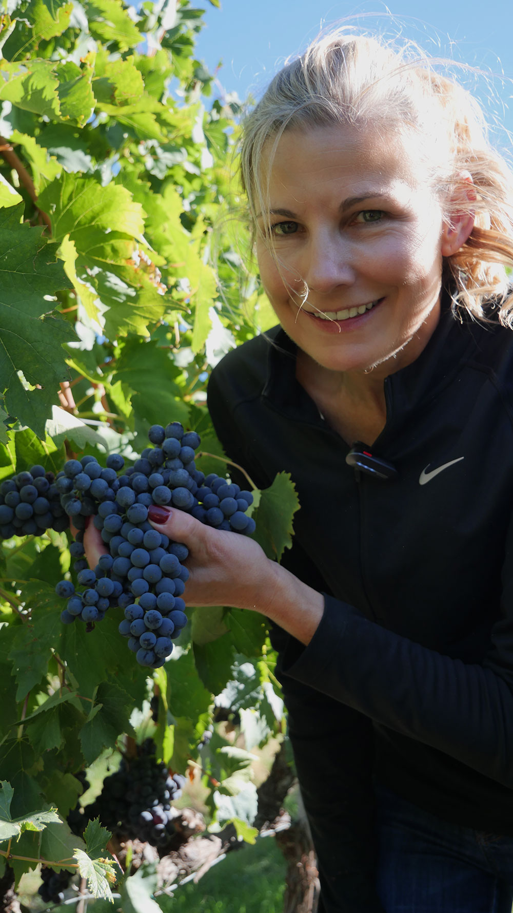 “La nostra vendemmia è manuale, con una prima selezione in vigna e raccolta delle uve in cassette” – racconta Alyson Morgan, enologa e direttrice dell’azienda – “i grappoli vengono ulteriormente controllati sul tavolo di selezione, acino per acino per garantire la perfetta qualità ed integrità del frutto che poi, per caduta, finisce direttamente nelle vasche di fermentazione.”