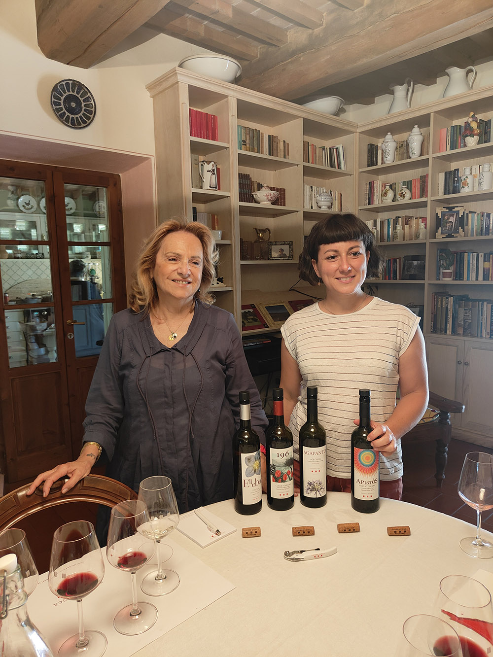 Ci spostiamo a Bolgheri per conoscere una piccola ma autentica azienda nata nel 2015 dalla volontà e dalla tenacia di Silvia Cirri, primaria di anestesia, rianimazione e terapia intensiva all’IRCCS Ospedale Galeazzi-Sant’Ambrogio di Milano. Il podere, numero 196 della strada provinciale Bolgherese, poco distante dal famoso Viale dei Cipressi, risale al 1861 ed era punto di incontro dei contadini del tempo; è caratterizzato da finestre e porte rosso brillante, riportate anche nel logo, e dal 1982 è la casa estiva della famiglia, al centro di un terreno a conca di 4,9 ettari con 800 ulivi secolari delle varietà toscane di Leccino, Frantoio e Moraiolo. Una particolarità dell’azienda è che proprio tra le piante di Moraiolo sono stati impiantati 0,8 ettari di filari di Cabernet Sauvignon ripristinando la vecchia tradizione toscana della promiscuità tra vigna e olivi. I filari vengono lavorati a file alterne per permettere all’acqua di penetrare nel terreno smosso e essere raccolta in profondità per una successiva disponibilità. Ogni anno, dopo la raccolta, vengono seminate essenze quali trifoglio per l’azoto, facelia, rafano che ha radici fittonate cioè che permettono la penetrazione dell’acqua creando delle crepe nel terreno e infine graminacee per creare un tappeto secco in grado di mantenere più bassa la temperatura del terreno.
