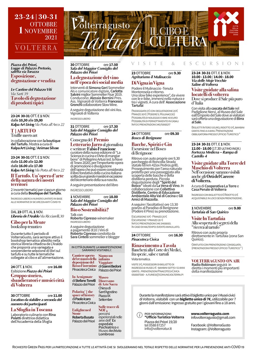 Per info e aggiornamenti: www.volterragusto.com | mail: infovolterragusto@gmail.com